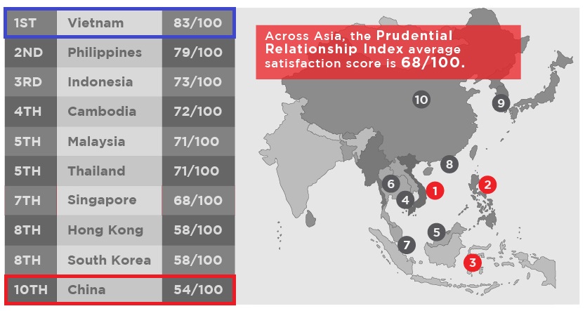 保誠保險(xiǎn)公布的2016年保誠人際關(guān)系指數(shù)顯示,亞洲人對人際關(guān)系的總體滿意度較高,為68%。亞洲十個國家和地區(qū)中,越南受訪者對人際關(guān)系的滿意度最高,為83分,其次分別是菲律賓和印度尼西亞。中國得分最低,僅54分。另外,人們最容易因金錢、孩子以及缺乏關(guān)注等問題產(chǎn)生爭執(zhí)。(美通社,2017年2月9日香港)